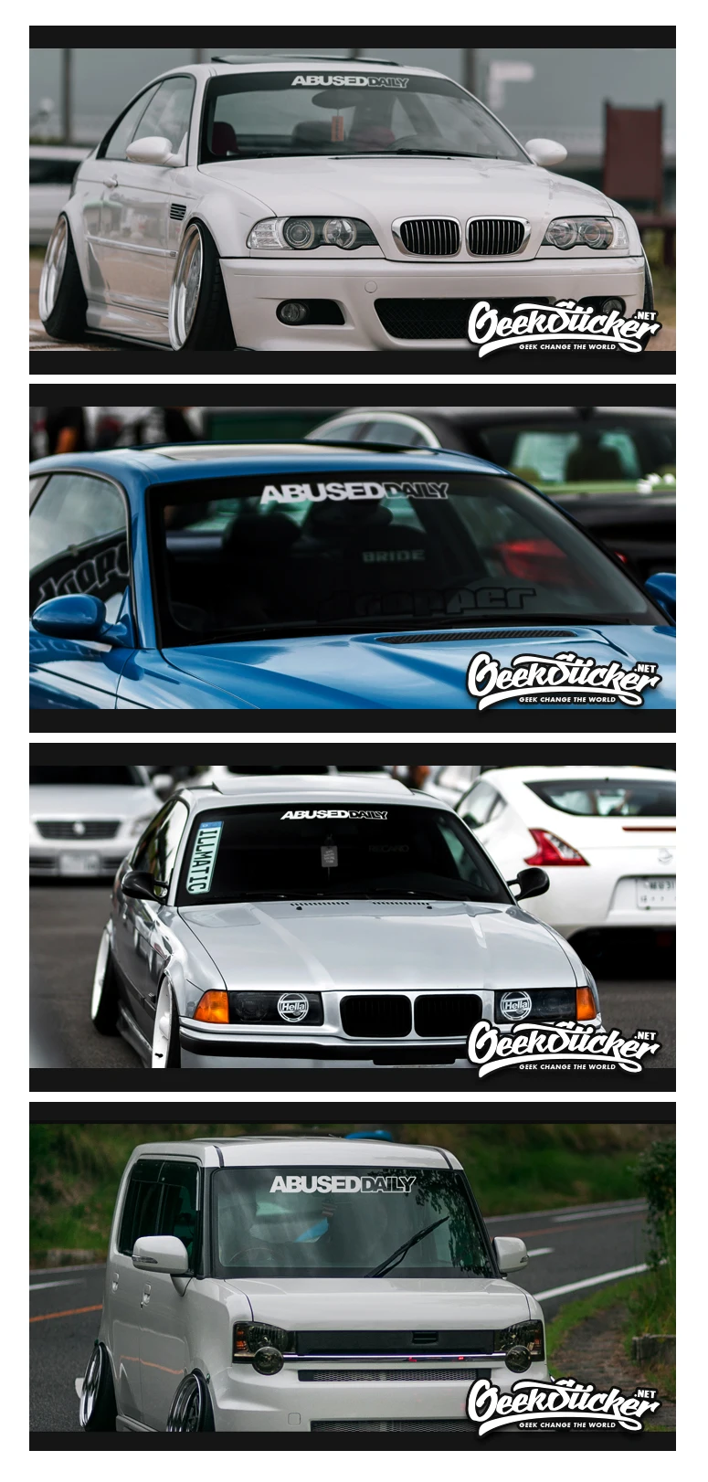 ABUSED DAILY Waterproof Auto Car Front Window Windshield Decal reflective Sticker For Mazda Toyota BMW VW Honda audi Car Styling